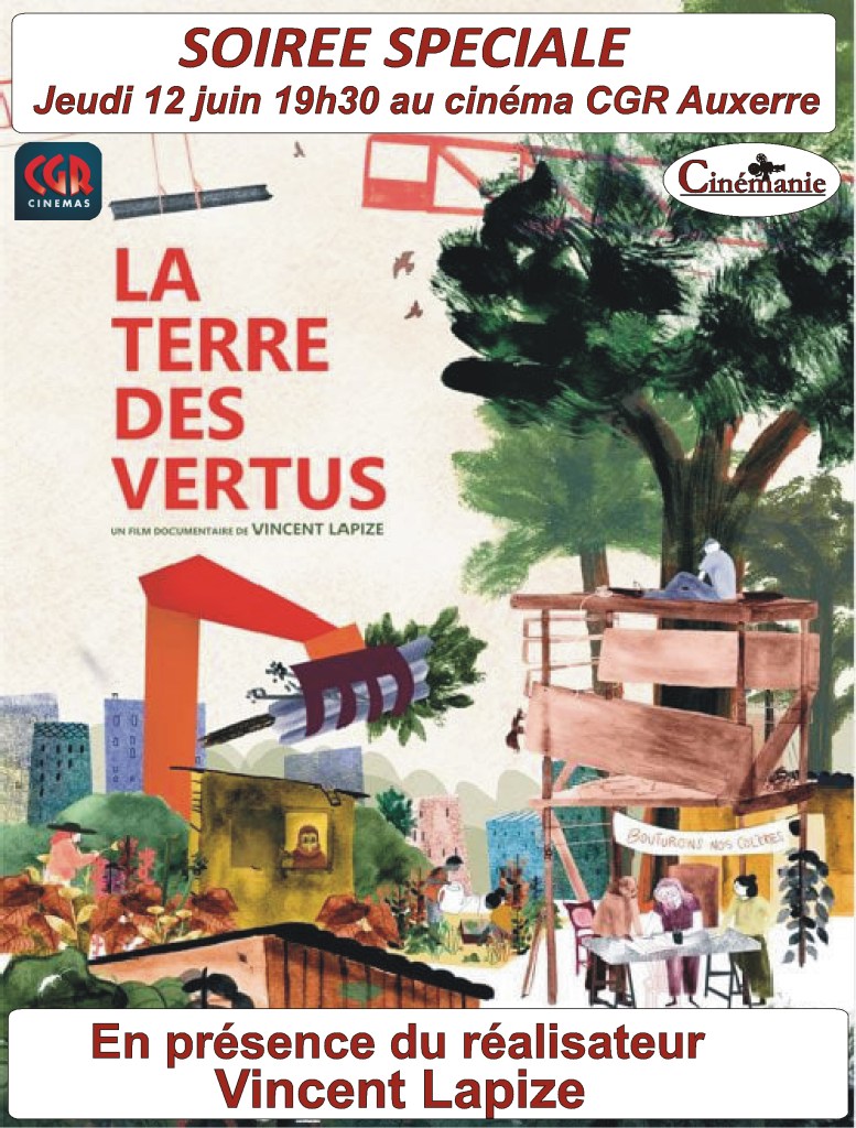 LA TERRE DES VERTUS, film de Vincent Lapize sera projeté jeudi 12 juin au cinéma CGR à Auxerre, à 19H30, en présence du réalisateur.
