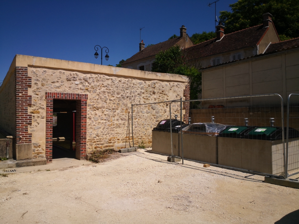 Montallery: Mise en valeur du lavoir et container à verre.