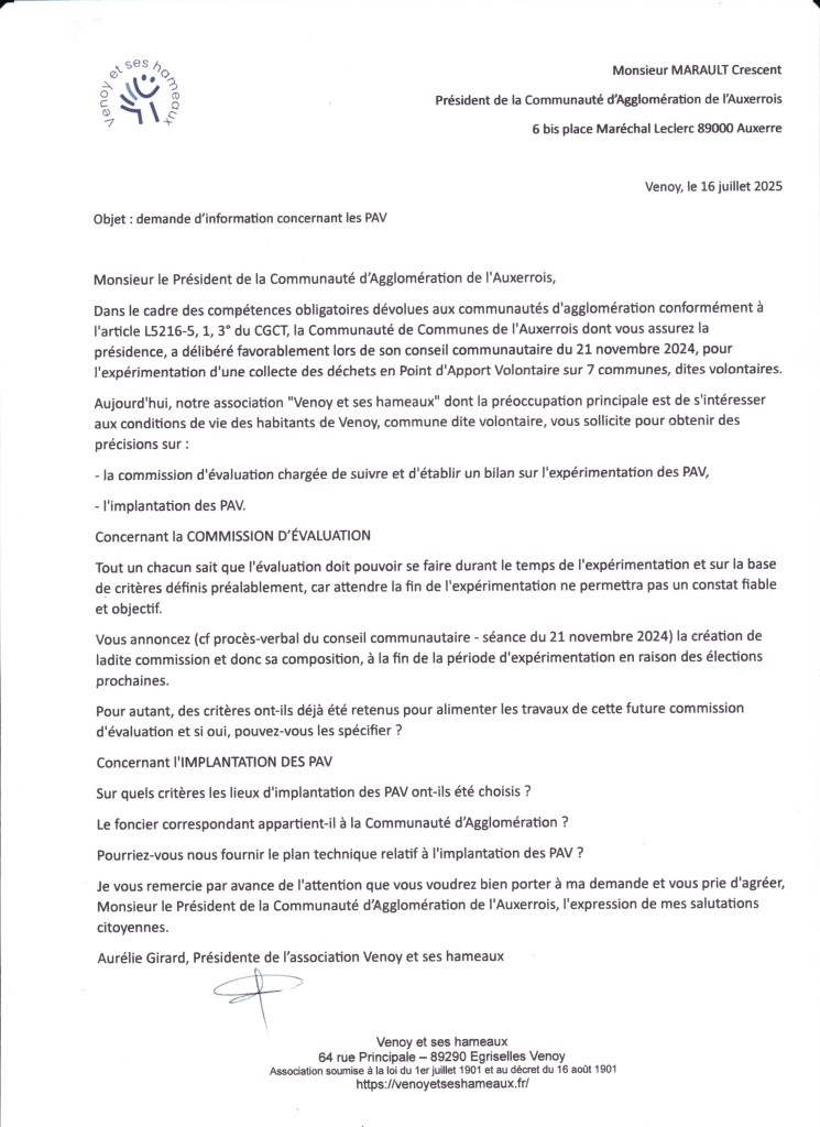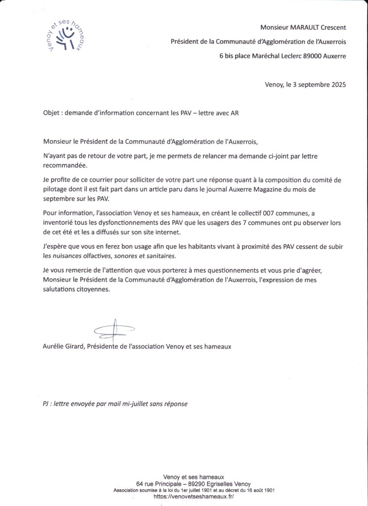 Aucune réponse n’a été apportée au courrier du 16 juillet.