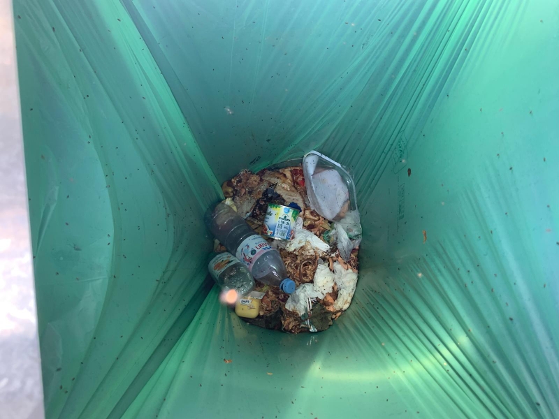 Un petit coup d’oeil dans la bac de biodéchets situé au moulin de La Coudre permet de voir la qualité du tri apportée par la solution de collecte imposée.