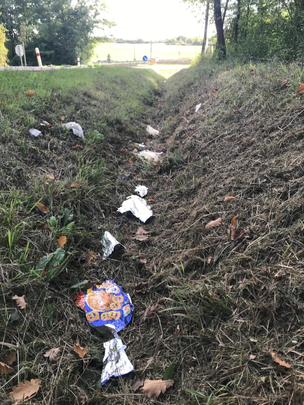 Sacs poubelles, cannettes broyées par l’épareuse, bouteilles d’urine sans doute jetées par les routiers avant le retour au dépôt, papier de toutes sortes, slips, pneus, c’est plus de 55 kilos de déchets (sans les pneus) qui ont été ramassés durant les deux heures et demie de collecte. Selon les consignes, l’ensemble des déchets a été déposé à la déchèterie du village.