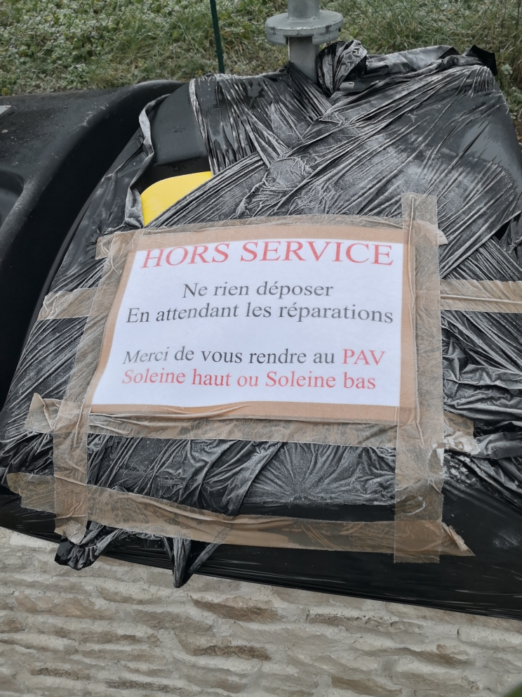 Victime du froid, d’une mauvaise manipulation ? Le PAV N°13 de la rue des trois Soleines est hors d’usage.